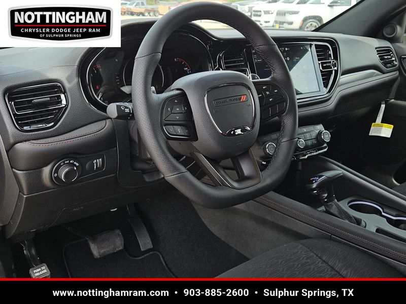 This DB Black Clearcoat 2026 Dodge Durango GT and has a beautiful Black interior color. This Durango has the following ENGINE: 3.6L V6 24V VVT UPG I W/ESS, TRANSMISSION: 8-SPEED AUTOMATIC (850RE), QUICK ORDER PACKAGE 2BD GT, WHEELS: 18" X 8" PAINTED ALUMINUM, TIRES: 265/60R18 BSW AS LRR, DB BLACK CLEARCOAT, BLACK, CLOTH BUCKET SEATS W/SHIFT INSERT, FRONT LICENSE PLATE BRACKET