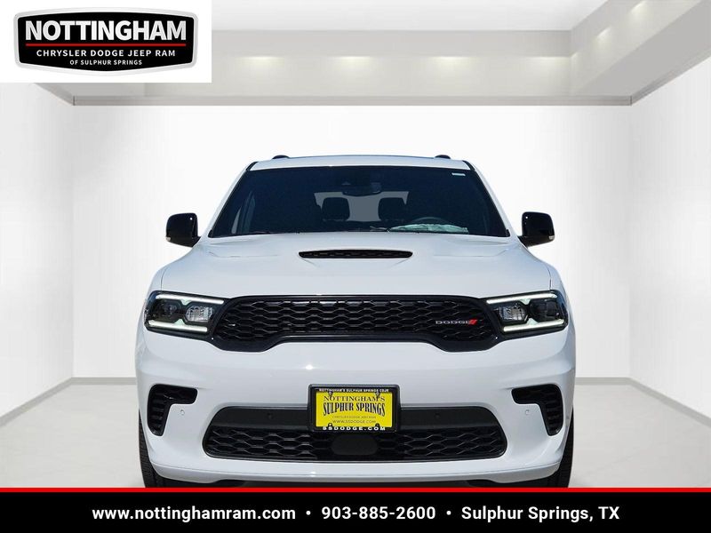 This White Knuckle Clearcoat 2026 Dodge Durango GT Plus HEMI V8 and has a beautiful Black interior color. This Durango has the following ENGINE: 5.7L V8 HEMI MDS VVT, TRANSMISSION: 8-SPEED AUTOMATIC (8HP70), QUICK ORDER PACKAGE 22T GT PLUS, WHEELS: 20" X 8" SATIN CARBON SPLIT 5-SPOKE, TIRES: 265/50R20 BSW AS LRR, WHITE KNUCKLE CLEARCOAT, BLACK, LEATHER TRIMMED BUCKET SEATS, MYFLEXCARE SERVICE PLAN, FRONT LICENSE PLATE BRACKET, 2ND ROW FOLD/TUMBLE CAPTAIN CHAIRS