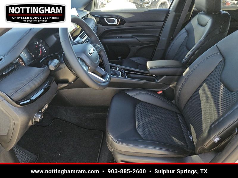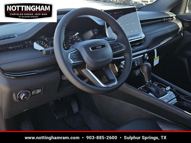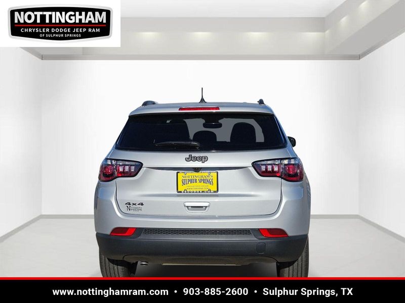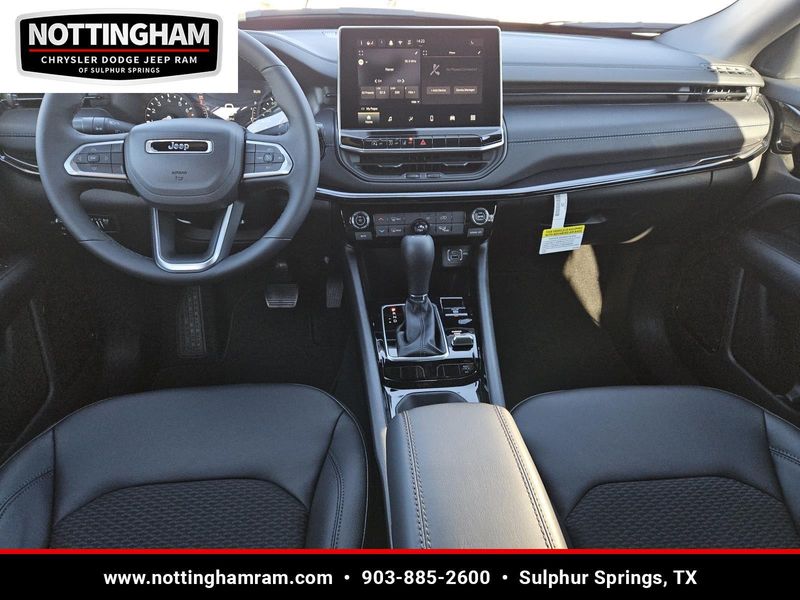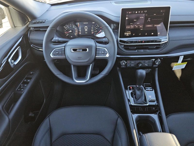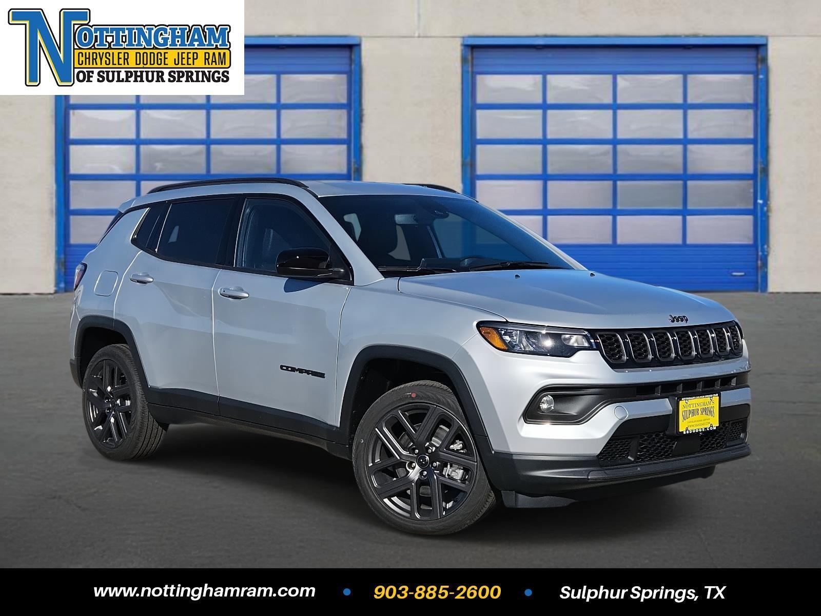 This Silver Zynith Metallic Clearcoat 2026 Jeep Compass Latitude Altitude and has a beautiful Black interior color. This Compass has the following 2.0L I4 DOHC DI TURBO ENGINE W/ESS, 8-SPEED AUTOMATIC 8F30 TRANSMISSION, QUICK ORDER PACKAGE 29N ALTITUDE, 19" X 7.5" ALUMINUM PAINTED WHEELS, 235/45R19 BSW ALL SEASON TIRES, SILVER ZYNITH METALLIC CLEARCOAT, BLACK, PREMIUM CLOTH/VINYL BUCKET SEATS, FRONT LICENSE PLATE BRACKET