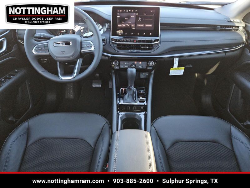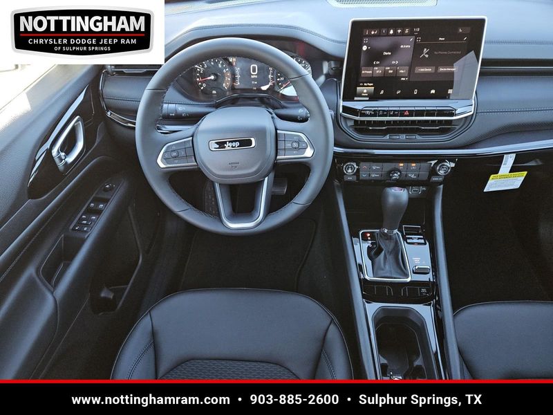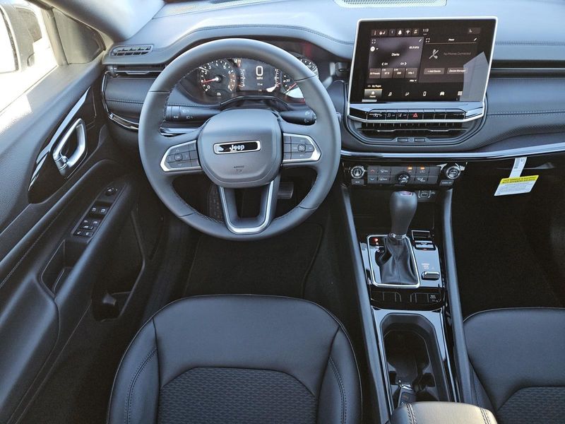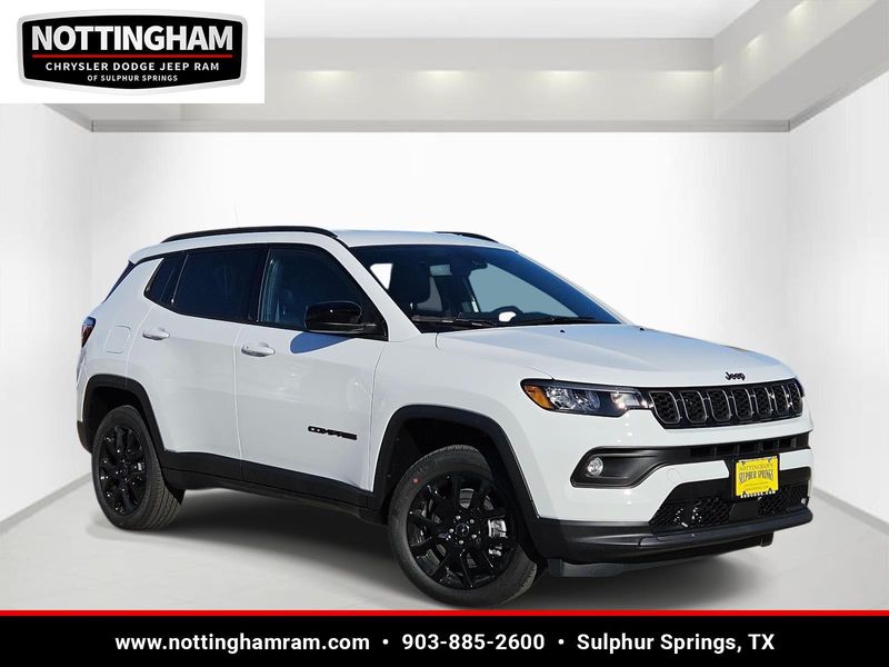 This Bright White Clearcoat 2026 Jeep Compass Latitude Altitude and has a beautiful Black interior color. This Compass has the following 2.0L I4 DOHC DI TURBO ENGINE W/ESS, 8-SPEED AUTOMATIC 8F30 TRANSMISSION, QUICK ORDER PACKAGE 29N ALTITUDE, 18" X 7" GLOSS BLACK PAINTED ALUMINUM WHEELS, 225/55R18 ALL SEASON TIRES, BRIGHT WHITE CLEARCOAT, BLACK, PREMIUM CLOTH/VINYL BUCKET SEATS, FRONT LICENSE PLATE BRACKET
