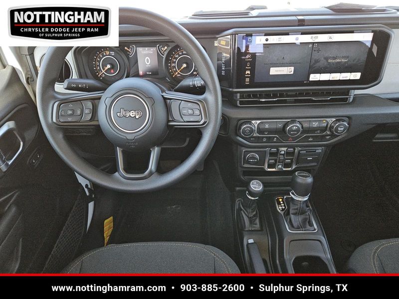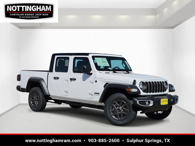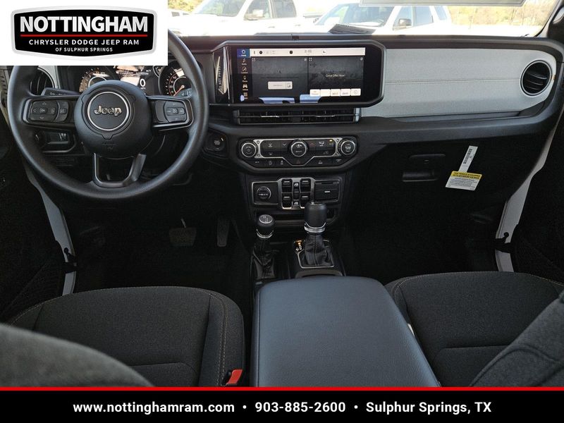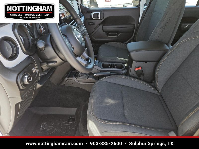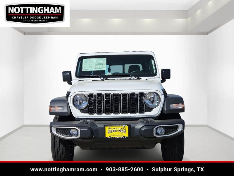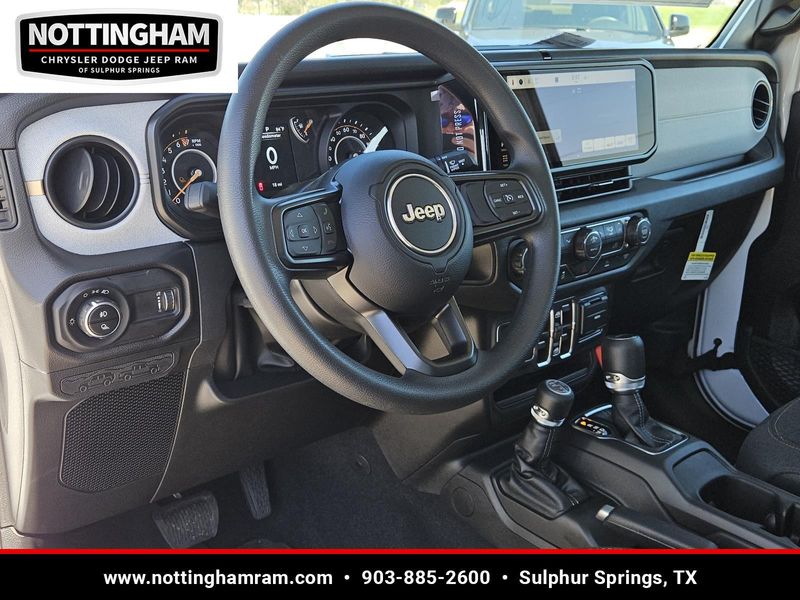 This Bright White Clearcoat 2026 Jeep Gladiator Sport and has a beautiful Black interior color. This Gladiator has the following 3.6L V6 24V VVT UPG I ENGINE W/ESS, 8-SPEED AUTOMATIC 850RE TRANSMISSION, QUICK ORDER PACKAGE 24B SPORT, 3.73 REAR AXLE RATIO, 17" X 7.5" GRAY WHEELS, 245/75R17 H/T TIRES, BRIGHT WHITE CLEARCOAT, BLACK, CLOTH LOW-BACK BUCKET SEATS, 5,800 LBS GVWR, BLACK 3-PIECE HARD TOP, FRONT LICENSE PLATE BRACKET, MOPAR SPRAY IN BEDLINER, MOPAR ALL-WEATHER SLUSH MATS, CREDIT