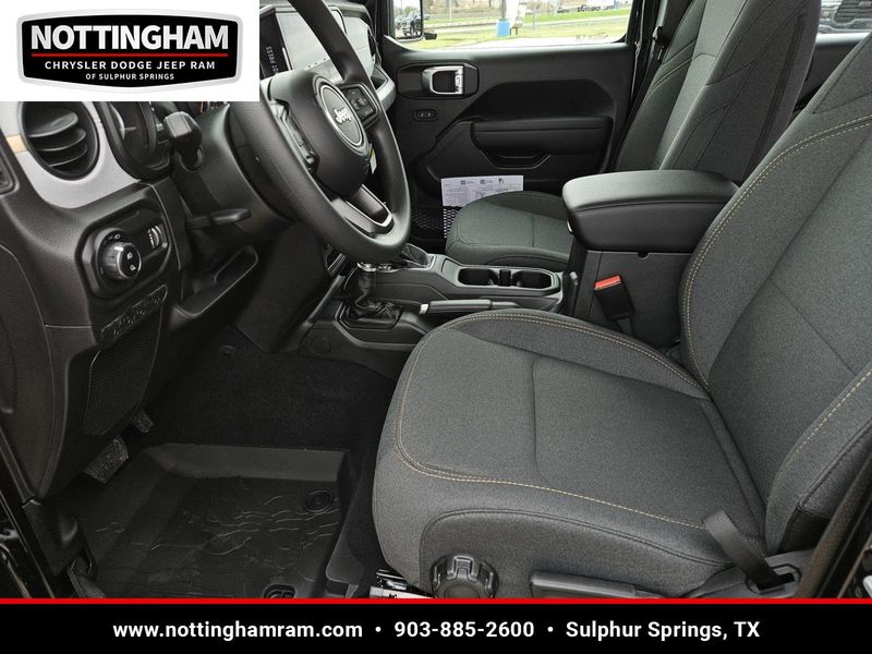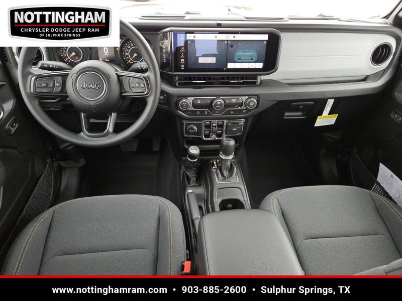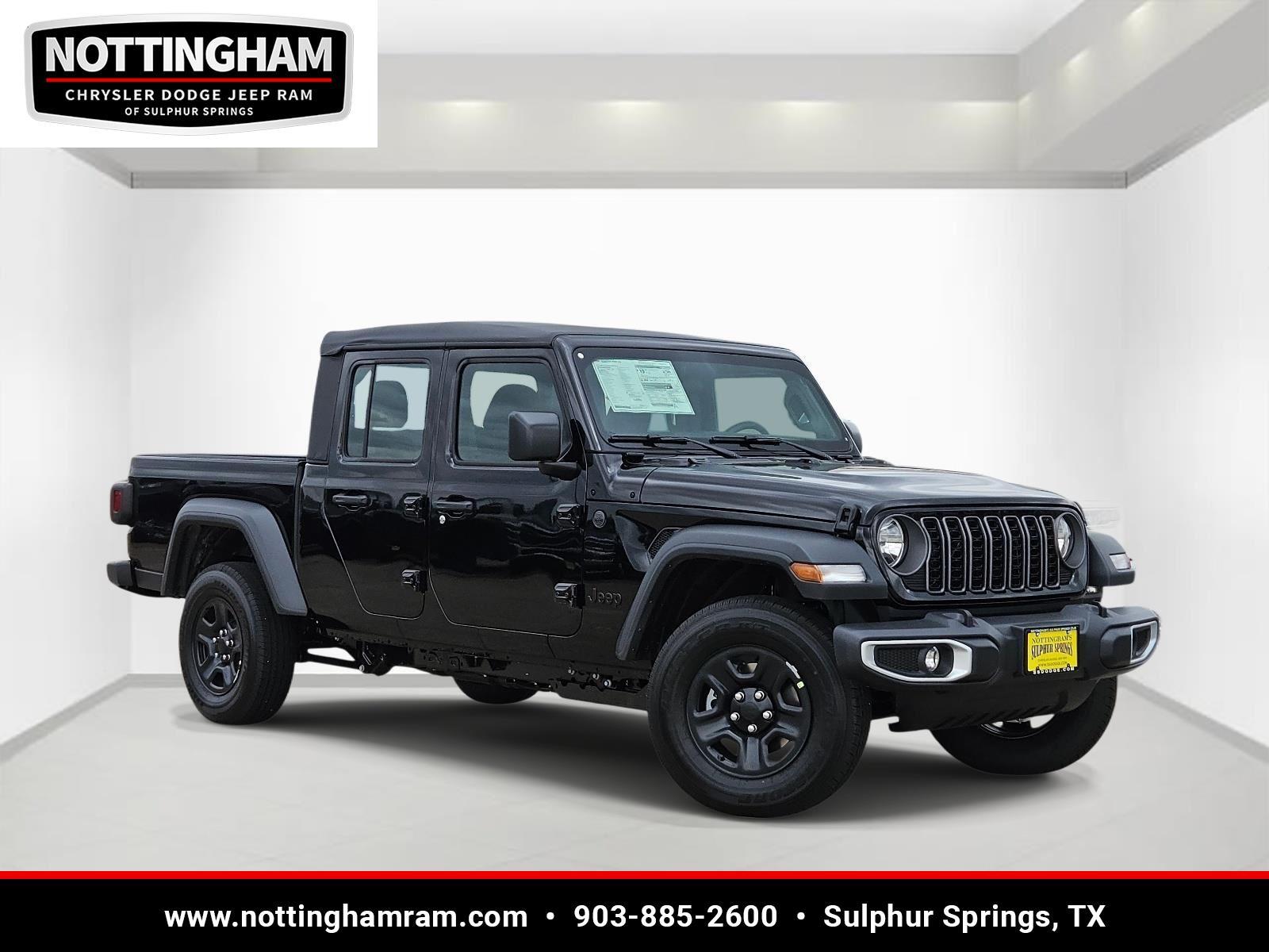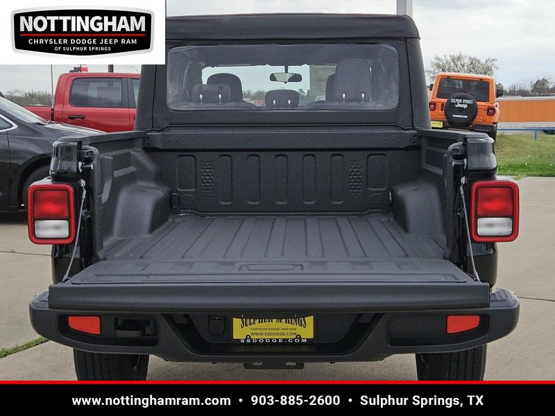 This Black Clearcoat 2026 Jeep Gladiator Sport and has a beautiful Black interior color. This Gladiator has the following 3.6L V6 24V VVT UPG I ENGINE W/ESS, 8-SPEED AUTOMATIC 850RE TRANSMISSION, QUICK ORDER PACKAGE 24B SPORT, 3.73 REAR AXLE RATIO, 17" X 7.5" BLACK STEEL STYLED WHEELS, 245/75R17 H/T TIRES, BLACK CLEARCOAT, BLACK, CLOTH LOW-BACK BUCKET SEATS, 5,800 LBS GVWR, FRONT LICENSE PLATE BRACKET, MOPAR SPRAY IN BEDLINER, MOPAR ALL-WEATHER SLUSH MATS