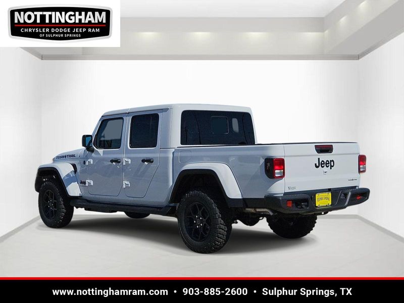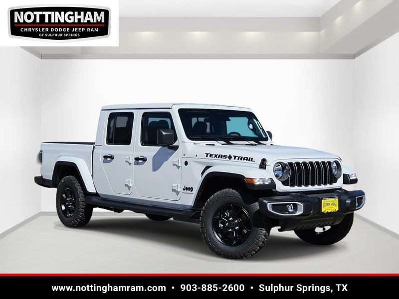 This Bright White Clearcoat 2026 Jeep Gladiator Texas Trail and has a beautiful Black interior color. This Gladiator has the following 3.6L V6 24V VVT UPG I ENGINE W/ESS, 8-SPEED AUTOMATIC 850RE TRANSMISSION, QUICK ORDER PACKAGE 24J TEXAS TRAIL, BRIGHT WHITE CLEARCOAT, BLACK, PREMIUM MCKINLEY TRIMMED SEATS, CONVENIENCE GROUP, FRONT LICENSE PLATE BRACKET, MOPAR ALL-WEATHER SLUSH MATS