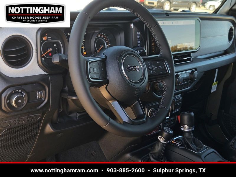 This 41 2026 Jeep Wrangler Willys and has a beautiful Black interior color. This Wrangler has the following WILLY'S SUSPENSION, 2.0L I4 DOHC DI TURBO ENGINE W/ESS, 8-SPEED AUTOMATIC 850RE TRANSMISSION, QUICK ORDER PACKAGE 22W WILLYS, 4.10 REAR AXLE RATIO, 17" X 7.5" PAINTED BLACK WHEELS, LT285/70R17C BSW MUD TERRAIN TIRES, 41, BLACK, CLOTH LOW-BACK BUCKET SEATS, 5,675 LBS GVWR, CONVENIENCE GROUP, SKY 1-TOUCH POWER TOP, BLACK MOPAR PERFORATED LEATHER