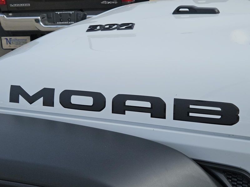 This Bright White Clearcoat 2026 Jeep Wrangler Moab 392 and has a beautiful Black interior color. This Wrangler has the following 6.4L V8 SRT HEMI MDS ENGINE, 8-SPEED AUTOMATIC 8HP75 TRANSMISSION, QUICK ORDER PACKAGE 27X MOAB, BRIGHT WHITE CLEARCOAT, BLACK, NAPPA LEATHER SEATS, FRONT LICENSE PLATE BRACKET, MOPAR ALL-WEATHER FLOOR MATS