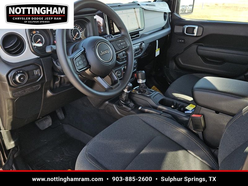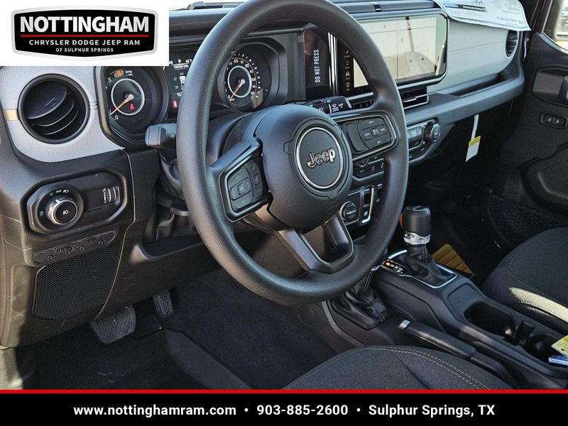 This Black Clearcoat 2026 Jeep Wrangler Sport and has a beautiful Black interior color. This Wrangler has the following 2.0L I4 DOHC DI TURBO ENGINE W/ESS, 8-SPEED AUTOMATIC 850RE TRANSMISSION, QUICK ORDER PACKAGE 22B SPORT, BLACK CLEARCOAT, BLACK, CLOTH LOW-BACK BUCKET SEATS, BLACK 3-PIECE HARD TOP, MOPAR ALL-WEATHER FLOOR MATS
