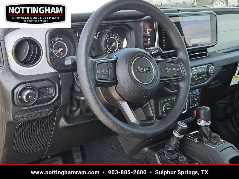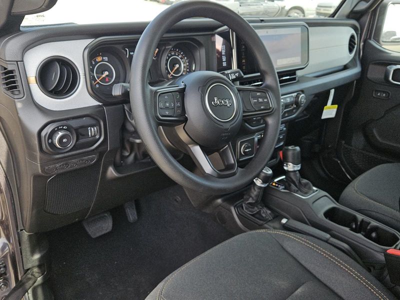 This Granite Crystal Metallic Clearcoat 2026 Jeep Wrangler Sport and has a beautiful Black interior color. This Wrangler has the following