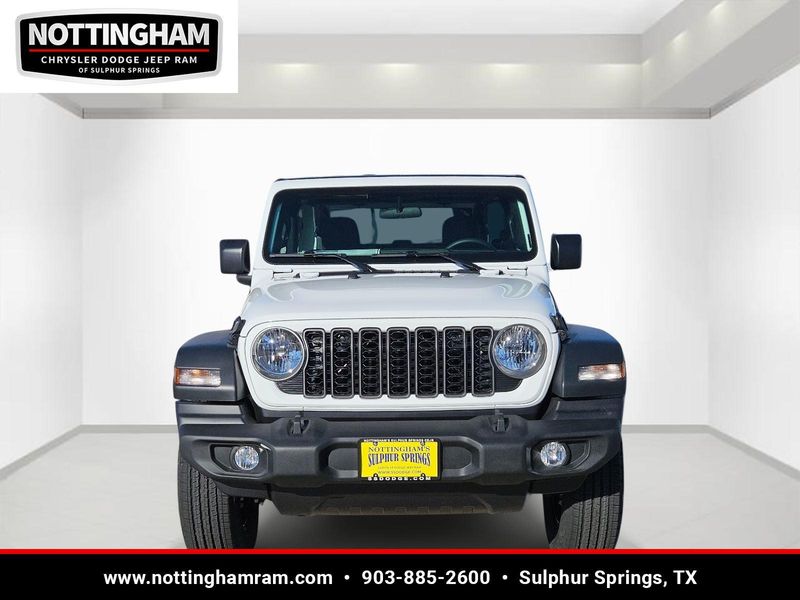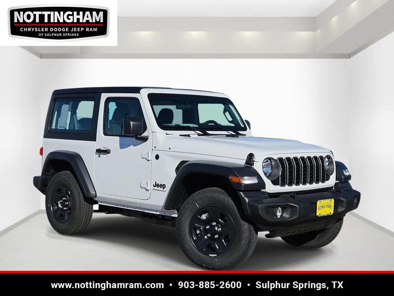 This Bright White Clearcoat 2026 Jeep Wrangler Sport and has a beautiful Black interior color. This Wrangler has the following 2.0L I4 DOHC DI TURBO ENGINE W/ESS, 8-SPEED AUTOMATIC 850RE TRANSMISSION, QUICK ORDER PACKAGE 22B SPORT, BRIGHT WHITE CLEARCOAT, BLACK, CLOTH LOW-BACK BUCKET SEATS, BLACK 3-PIECE HARD TOP, MOPAR ALL-WEATHER FLOOR MATS