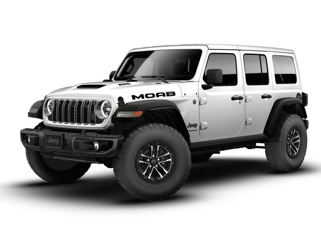 This Bright White Clearcoat 2026 Jeep Wrangler Moab 392 and has a beautiful Black interior color. This Wrangler has the following 6.4L V8 SRT HEMI MDS ENGINE, 8-SPEED AUTOMATIC 8HP75 TRANSMISSION, QUICK ORDER PACKAGE 27X MOAB, BRIGHT WHITE CLEARCOAT, BLACK, NAPPA LEATHER SEATS, FRONT LICENSE PLATE BRACKET, MOPAR ALL-WEATHER FLOOR MATS