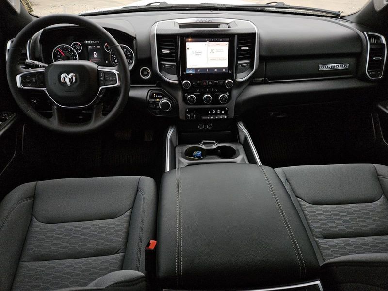 This Bright White Clearcoat 2026 Ram 1500 Big Horn and has a beautiful Diesel Gray/Black interior color. This 1500 has the following ENGINE: 3.0L I6 HURRICANE SO TWIN TURBO ESS, TRANSMISSION: 8-SPEED AUTOMATIC (8HP75), QUICK ORDER PACKAGE 21Z BIG HORN, 3.55 REAR AXLE RATIO, WHEELS: 18" X 8" CAST-ALUMINUM PAINTED, TIRES: 275/65R18 BSW ALL SEASON LRR, BRIGHT WHITE CLEARCOAT, DIESEL GRAY/BLACK, DELUXE CLOTH BUCKET SEATS, GVWR: 7,100 LBS, BIG HORN LEVEL 1 EQUIPMENT GROUP, TRAILER BRAKE CONTROL, FRONT LICENSE PLATE BRACKET, REAR WHEELHOUSE LINERS, MOPAR FRONT & REAR RUBBER FLOOR MATS