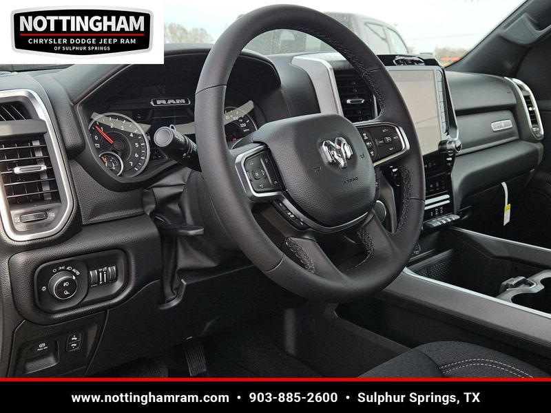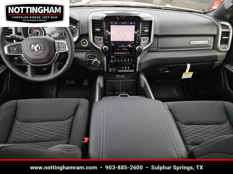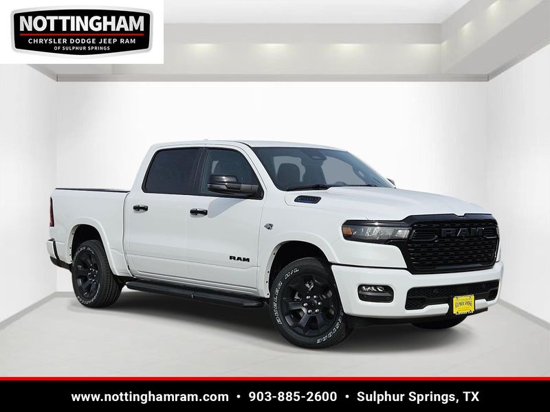 This Bright White Clearcoat 2026 Ram 1500 Lone Star and has a beautiful Black interior color. This 1500 has the following ENGINE: 5.7L V8 HEMI MDS VVT ETORQUE, TRANSMISSION: 8-SPEED AUTOMATIC (8HP75), QUICK ORDER PACKAGE 27R LONE STAR, 3.92 REAR AXLE RATIO, WHEELS: 20" X 9.0" ALUMINUM PAINTED CLAD, TIRES: 275/55R20 OWL ALL SEASON, BRIGHT WHITE CLEARCOAT, BLACK, DELUXE CLOTH BUCKET SEATS, GVWR: 7,100 LBS, BIG HORN LEVEL 2 EQUIPMENT GROUP, NIGHT EDITION, ANTI-SPIN DIFFERENTIAL REAR AXLE, TRAILER BRAKE CONTROL, FRONT LICENSE PLATE BRACKET, MOPAR BLACK TUBULAR SIDE STEPS, REAR WHEELHOUSE LINERS, RADIO: UCONNECT 5 NAV W/12.0" DISPLAY, 9 AMPLIFIED SPEAKERS W/SUBWOOFER, MOPAR FRONT & REAR RUBBER FLOOR MATS