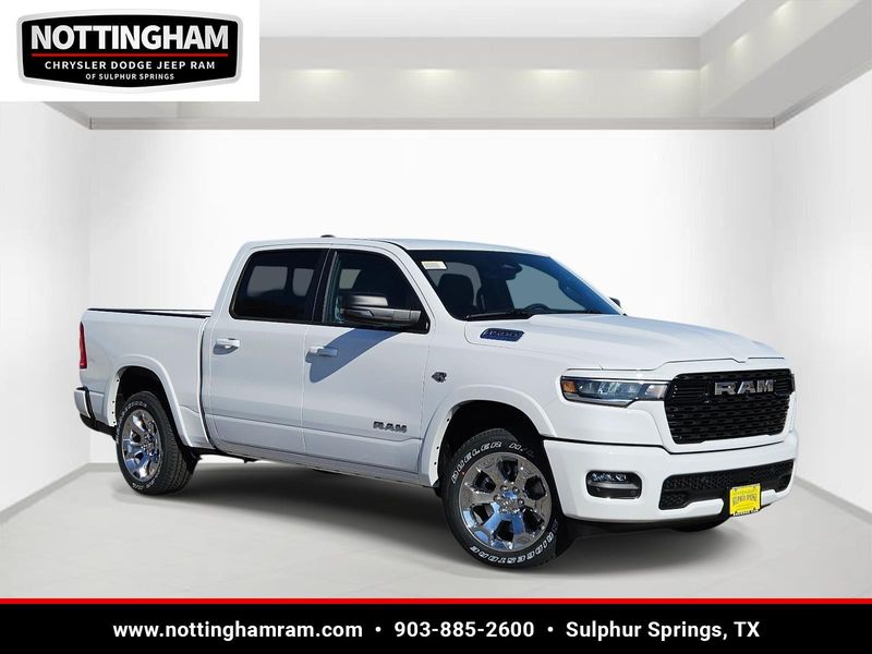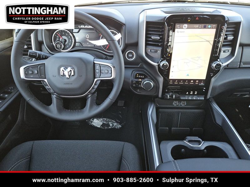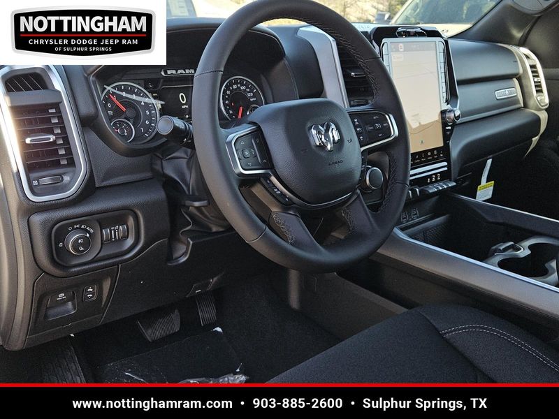 This Bright White Clearcoat 2026 Ram 1500 Lone Star and has a beautiful Black interior color. This 1500 has the following ENGINE: 5.7L V8 HEMI MDS VVT ETORQUE, TRANSMISSION: 8-SPEED AUTOMATIC (8HP75), QUICK ORDER PACKAGE 27R LONE STAR, 3.92 REAR AXLE RATIO, WHEELS: 20" X 9" ALUMINUM CHROME CLAD (WRK), TIRES: 275/55R20 OWL ALL SEASON, BRIGHT WHITE CLEARCOAT, BLACK, DELUXE CLOTH BUCKET SEATS, GVWR: 7,100 LBS, BIG HORN LEVEL 2 EQUIPMENT GROUP, SPORT APPEARANCE PACKAGE, ANTI-SPIN DIFFERENTIAL REAR AXLE, TRAILER BRAKE CONTROL, FRONT LICENSE PLATE BRACKET, RADIO: UCONNECT 5 NAV W/12.0" DISPLAY, 9 AMPLIFIED SPEAKERS W/SUBWOOFER, MOPAR FRONT & REAR RUBBER FLOOR MATS