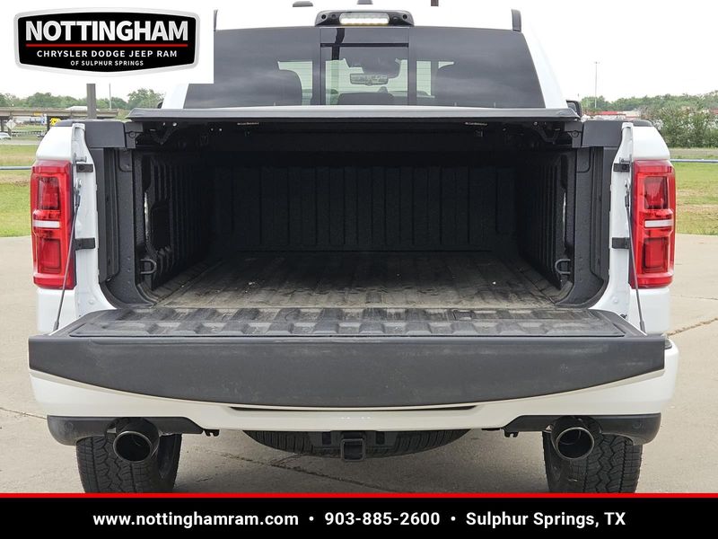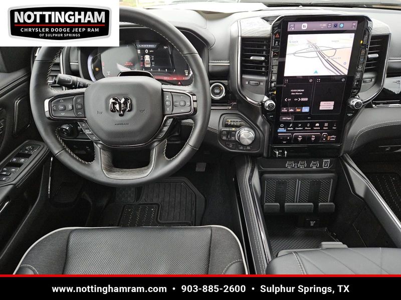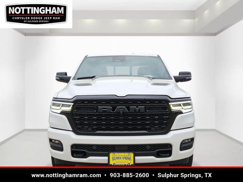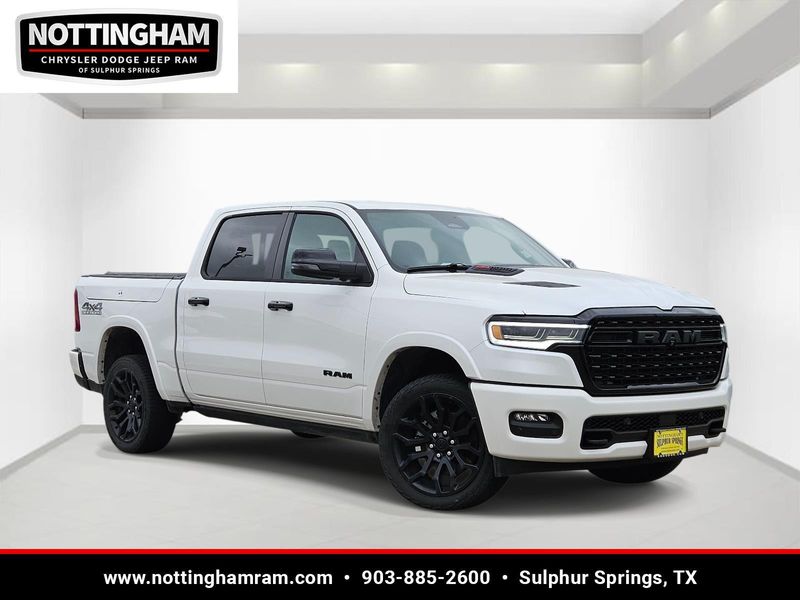 This Ivory White Tri-Coat Pearlcoat 2026 Ram 1500 Limited and has a beautiful Black interior color. This 1500 has the following