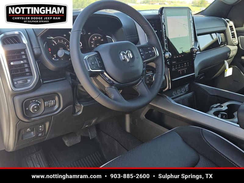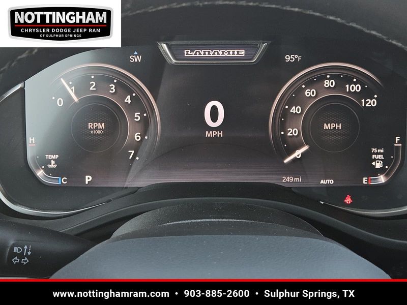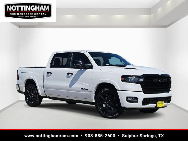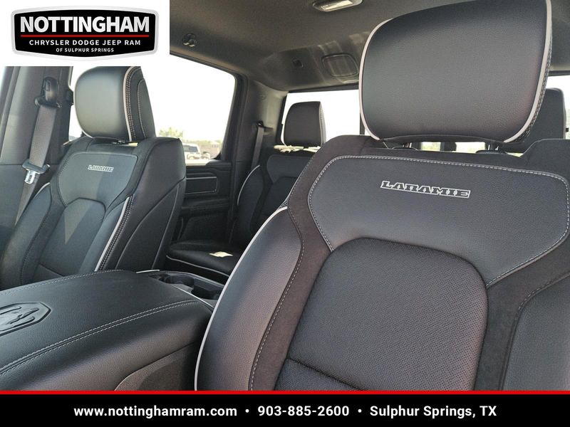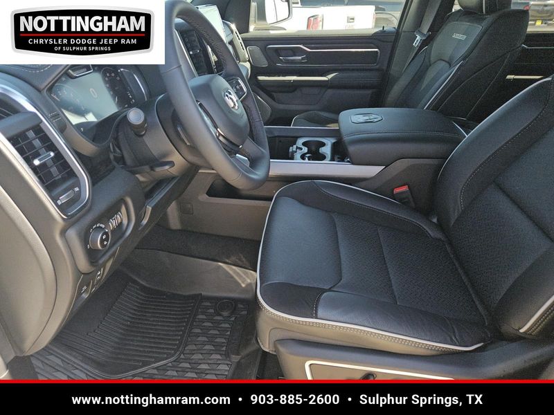 This Bright White Clearcoat 2026 Ram 1500 Laramie and has a beautiful Black interior color. This 1500 has the following ENGINE: 3.0L I6 HURRICANE SO TWIN TURBO ESS, TRANSMISSION: 8-SPEED AUTOMATIC (8HP75), QUICK ORDER PACKAGE 21H LARAMIE, 3.92 REAR AXLE RATIO, WHEELS: 22" X 9" FORGED ALUMINUM, TIRES: 285/45R22XL BSW ALL SEASON, BRIGHT WHITE CLEARCOAT, BLACK, LEATHER TRIMMED BUCKET SEATS, NIGHT EDITION, LARAMIE LEVEL 2 EQUIPMENT GROUP, ANTI-SPIN DIFFERENTIAL REAR AXLE, FRONT LICENSE PLATE BRACKET, POWER DEPLOYABLE RUNNING BOARDS, RADIO: UCONNECT 5 NAV W/14.4" DISPLAY, MOPAR FRONT & REAR RUBBER FLOOR MATS, RAMBOX CARGO MANAGEMENT SYSTEM, MANUFACTURER'S STATEMENT OF ORIGIN