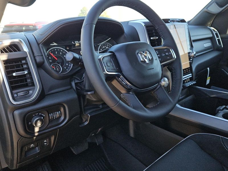 This Forged Blue Metallic 2026 Ram 1500 Laramie and has a beautiful Black interior color. This 1500 has the following ENGINE: 3.0L I6 HURRICANE SO TWIN TURBO ESS, TRANSMISSION: 8-SPEED AUTOMATIC (8HP75), QUICK ORDER PACKAGE 21H LARAMIE, 3.92 REAR AXLE RATIO, WHEELS: 20" X 9" PREMIUM PAINT/POLISH, TIRES: 275/55R20 ALL SEASON LRR, FORGED BLUE METALLIC, BLACK, LEATHER TRIMMED BUCKET SEATS, LARAMIE SOUTHWEST EDITION, LARAMIE LEVEL 1 EQUIPMENT GROUP, ANTI-SPIN DIFFERENTIAL REAR AXLE, TRAILER BRAKE CONTROL, 33 GALLON FUEL TANK, DUAL-PANE PANORAMIC SUNROOF, FRONT LICENSE PLATE BRACKET, POWER DEPLOYABLE RUNNING BOARDS, MOPAR FRONT & REAR RUBBER FLOOR MATS, MOPAR LOCKABLE CONSOLE STORAGE