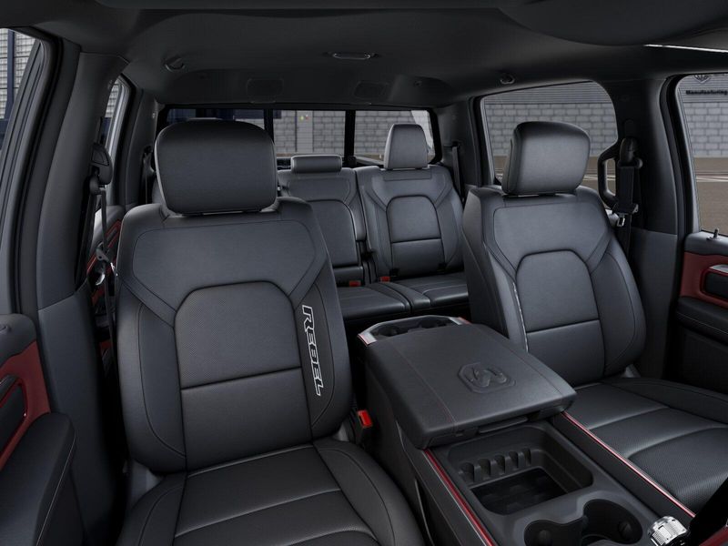 This Diamond Black Crystal Pearlcoat 2026 Ram 1500 Rebel and has a beautiful Red/Black interior color. This 1500 has the following ENGINE: 3.0L I6 HURRICANE SO TWIN TURBO ESS, TRANSMISSION: 8-SPEED AUTOMATIC (8HP75), QUICK ORDER PACKAGE 21W REBEL, MONOTONE PAINT, DIAMOND BLACK CRYSTAL PEARLCOAT, DIAMOND BLACK CRYSTAL PEARLCOAT, RED/BLACK, CLOTH/VINYL BUCKET SEATS, BED UTILITY GROUP, REBEL LEVEL 1 EQUIPMENT GROUP, DECAL DELETE, FRONT LICENSE PLATE BRACKET, MOPAR BLACK TUBULAR SIDE STEPS