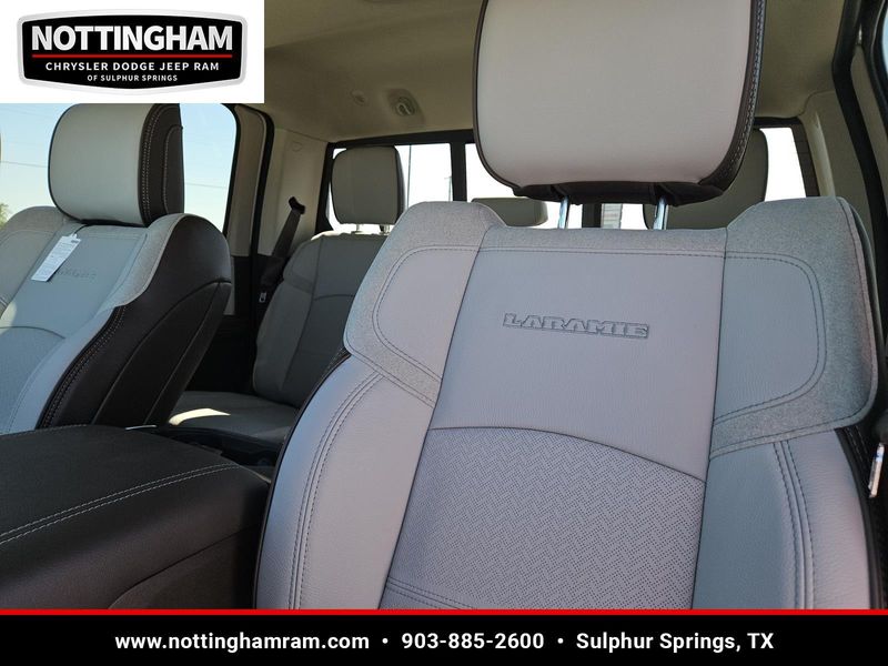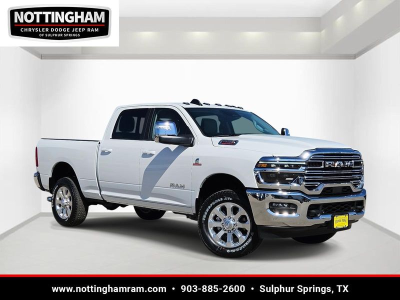 This Bright White Clearcoat 2026 Ram 2500 Laramie and has a beautiful Bison Brown/Sea Salt interior color. This 2500 has the following ENGINE: 6.7L I6 CUMMINS HO TURBO DIESEL, TRANSMISSION: 8-SPEED TORQUEFLITE HD AUTOMATIC, QUICK ORDER PACKAGE 24H LARAMIE, 3.42 AXLE RATIO, WHEELS: 20" X 8.0" POLISHED ALUMINUM, TIRES: LT285/60R20E OWL ON/OFF ROAD, BRIGHT WHITE CLEARCOAT, BISON BROWN/SEA SALT, LEATHER TRIMMED BUCKET SEATS, GVWR: 11,040 LBS, CHROME BUMPER PACKAGE, LARAMIE LEVEL 1 PLUS EQUIPMENT GROUP, TRANSFER CASE SKID PLATE SHIELD, FRONT LICENSE PLATE BRACKET, CLEARANCE LAMPS, MOPAR FRONT & REAR RUBBER FLOOR MATS, CTR STOP LAMP W/CARGO VIEW CAMERA