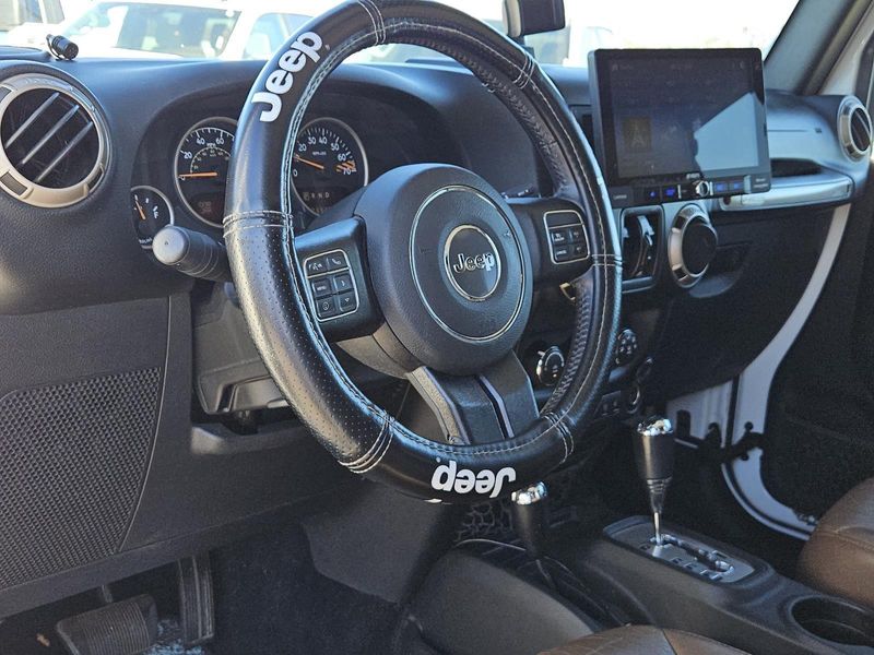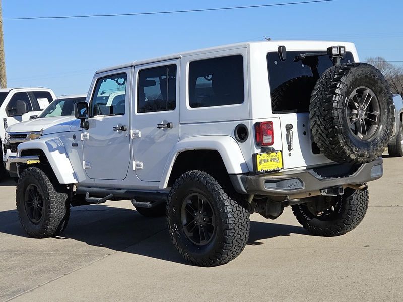 This Bright White Clearcoat 2016 Jeep Wrangler Unlimited 75th Anniversary has 83,319 miles and has a beautiful Dark Saddle/Black interior color.