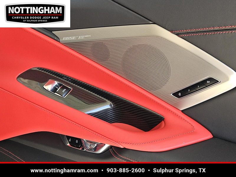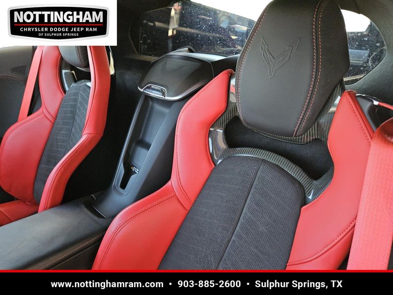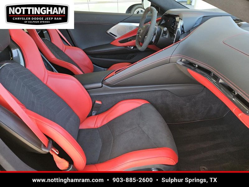 This Black 2020 Chevrolet Corvette 3LT has 1,808 miles and has a beautiful Adrenaline Red interior color.