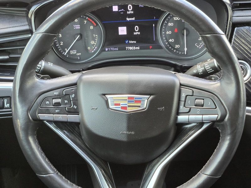 This Crystal White Tricoat 2022 Cadillac XT6 Premium Luxury has 77,793 miles and has a beautiful Jet Black interior color.