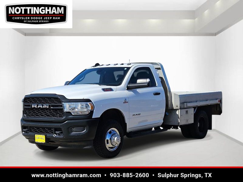 This Bright White Clearcoat 2022 Ram 3500 Chassis Cab Tradesman has 105,930 miles and has a beautiful Black interior color.