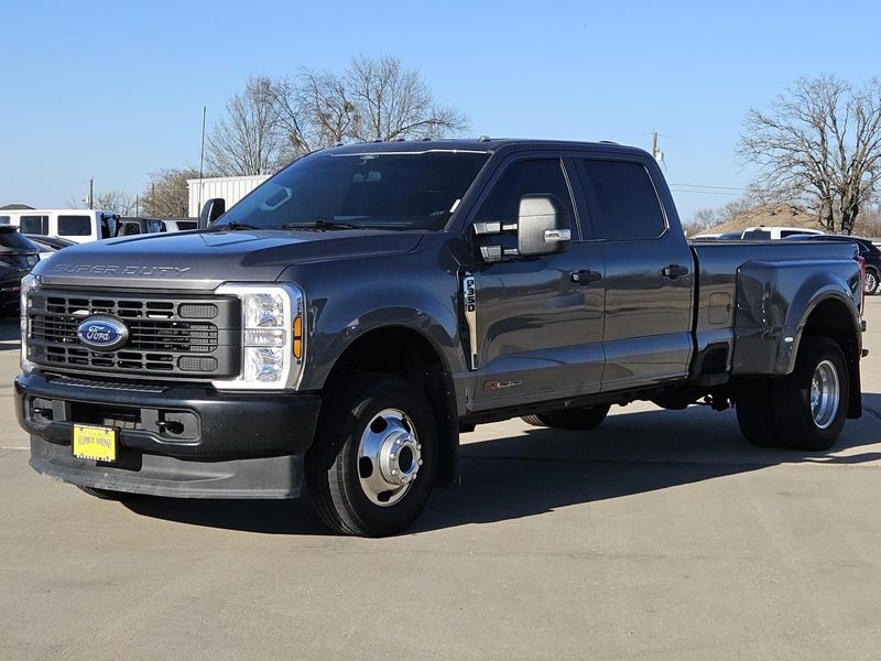 This Carbonized Gray Metallic 2024 Ford Super Duty F-350 DRW XL has 17,916 miles and has a beautiful Medium Dark Slate interior color.