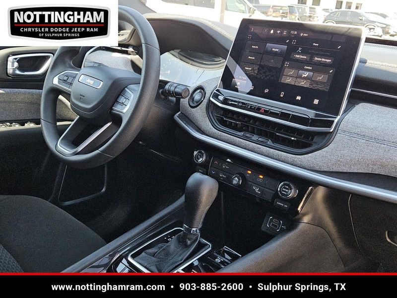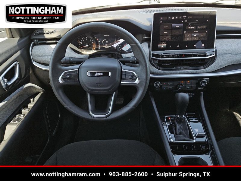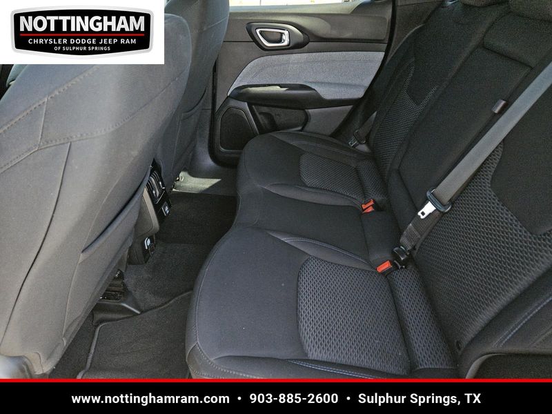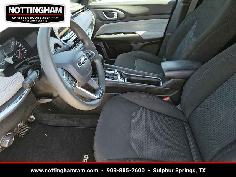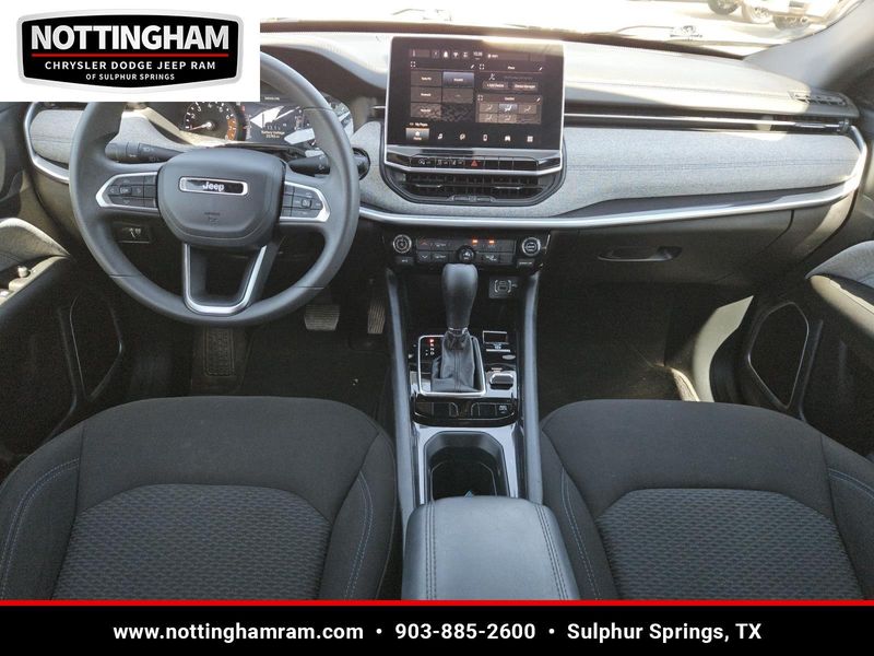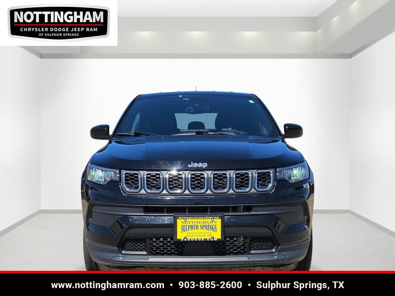 This Diamond Black Crystal Pearlcoat 2024 Jeep Compass Sport has 25,754 miles and has a beautiful Black interior color.