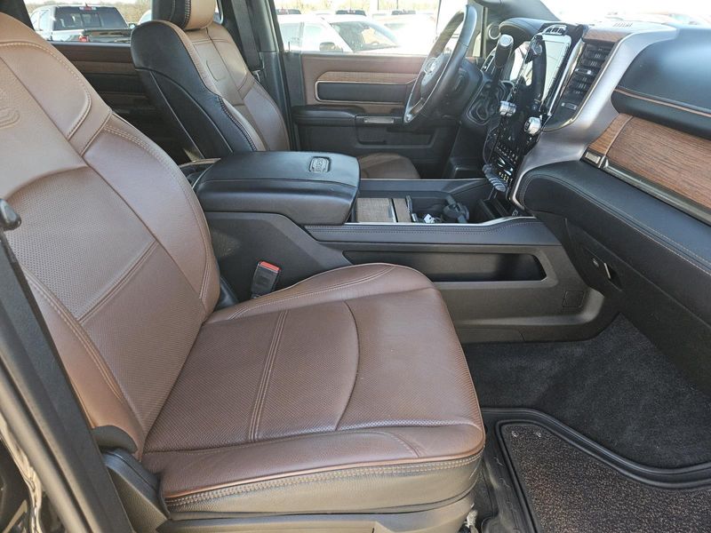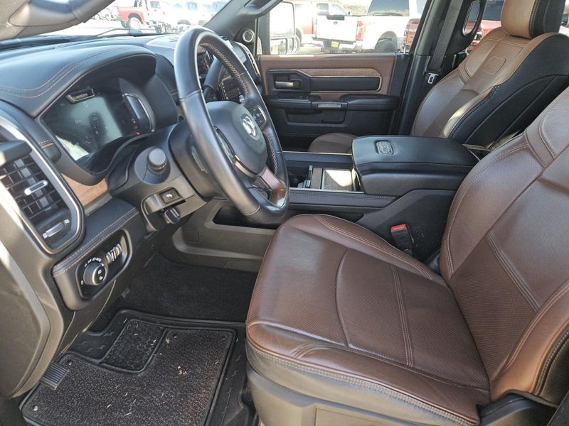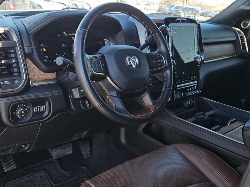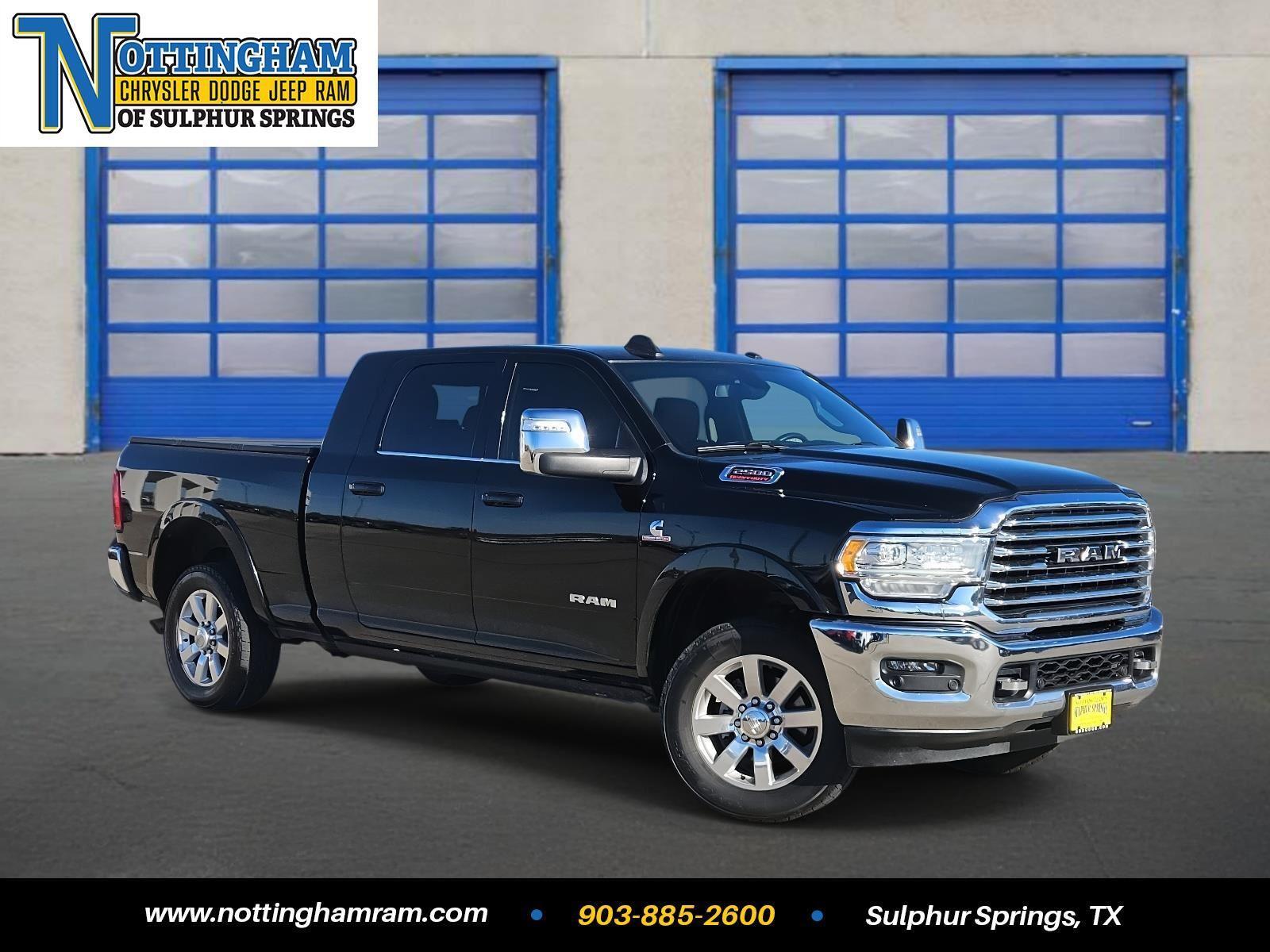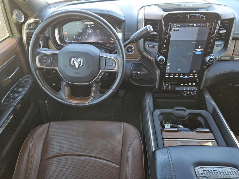 This Diamond Black Crystal Pearlcoat 2024 Ram 2500 Longhorn has 38,017 miles and has a beautiful Cattle Tan/Black interior color.