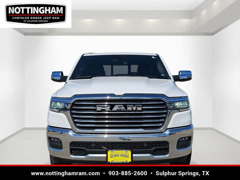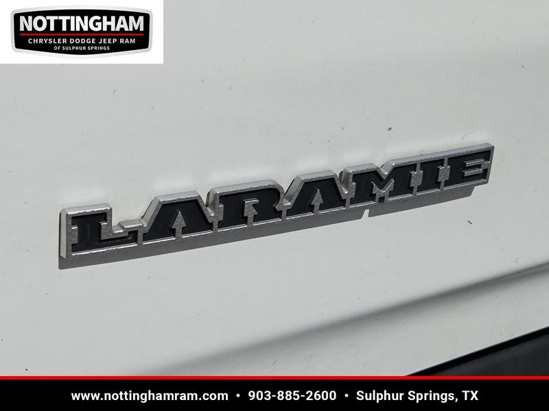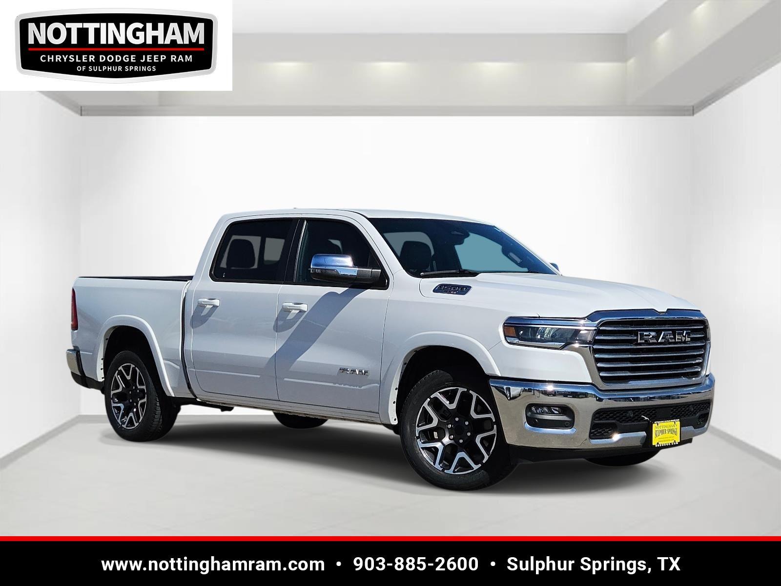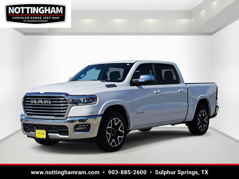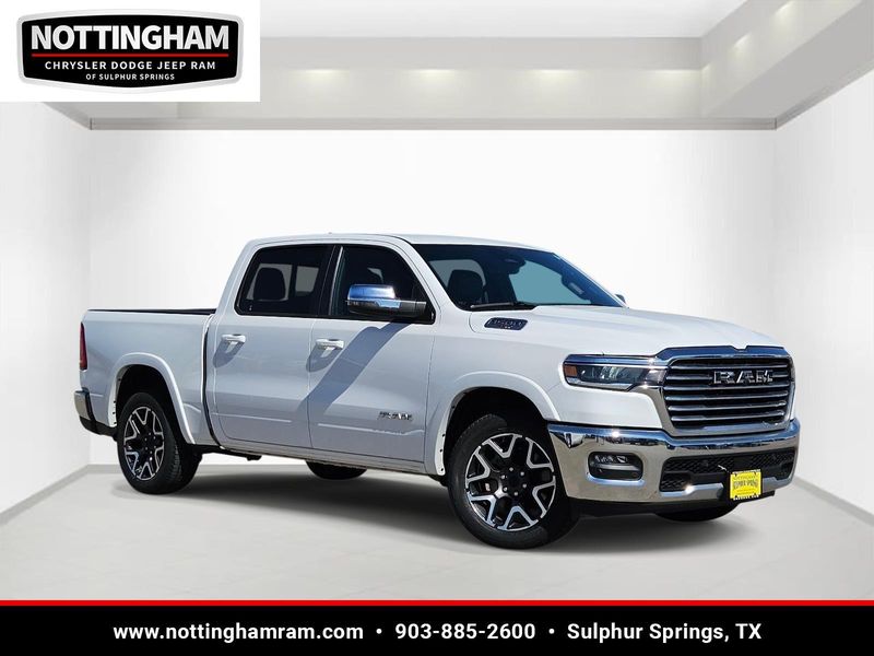 This Bright White Clearcoat 2025 Ram 1500 Laramie has 55,045 miles and has a beautiful Black interior color.
