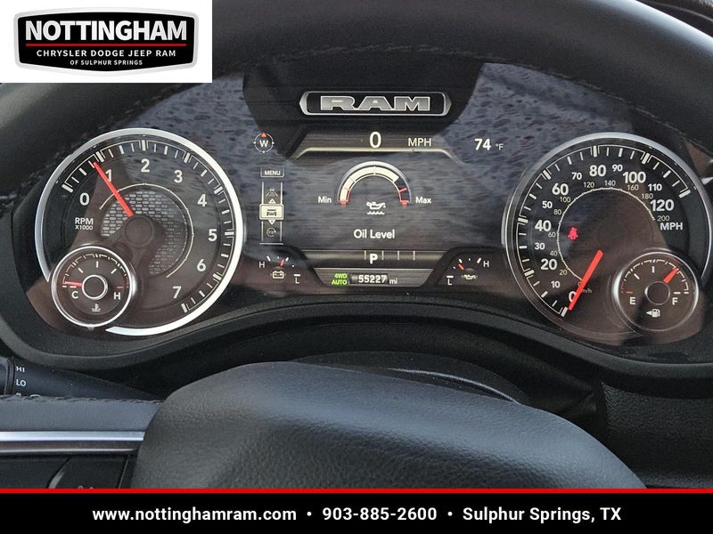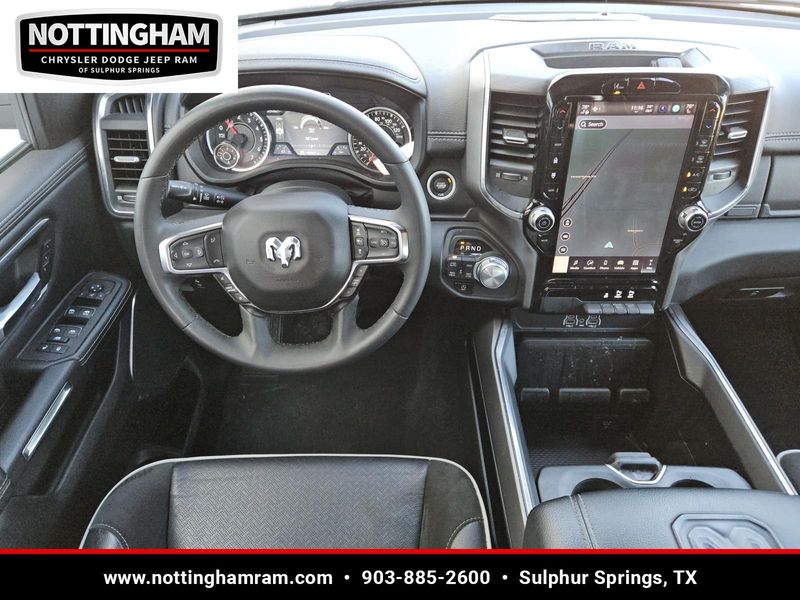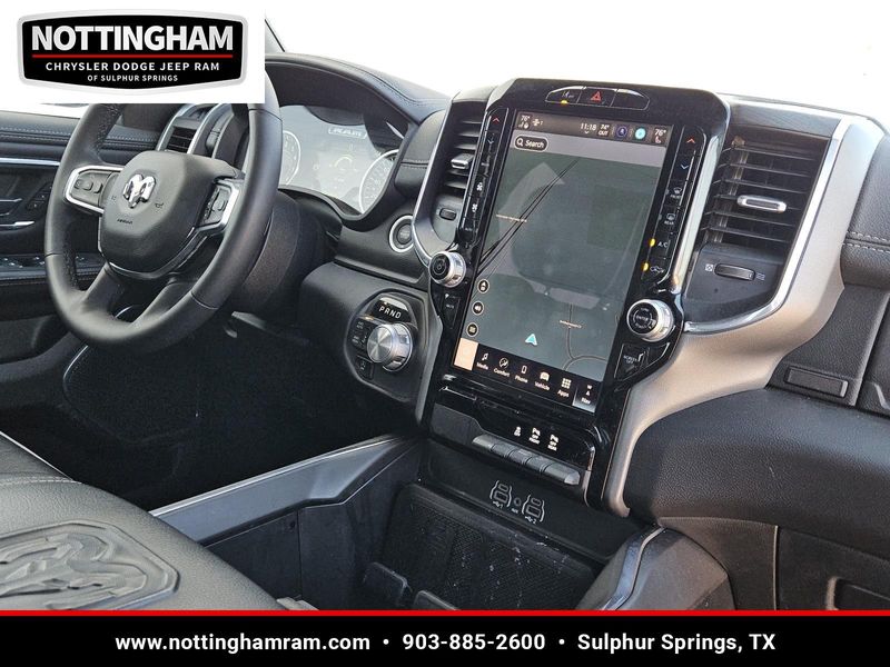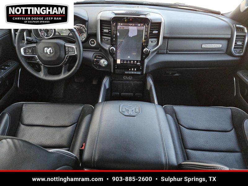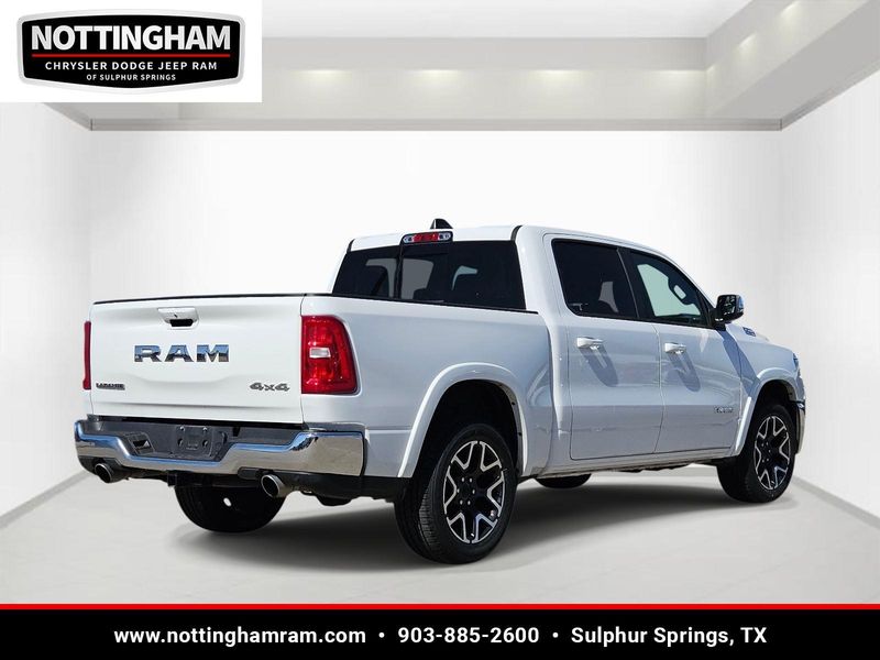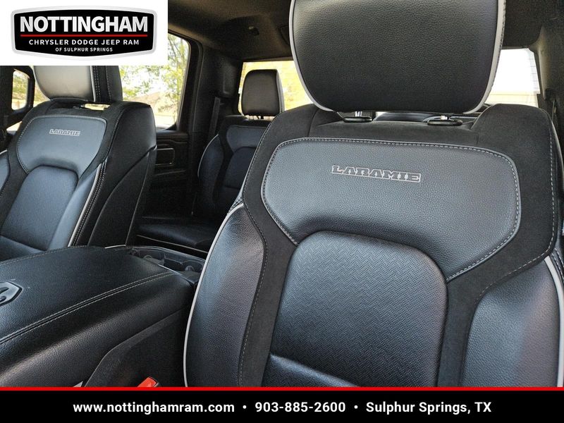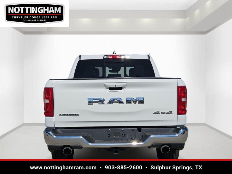This Bright White Clearcoat 2025 Ram 1500 Laramie has 55,045 miles and has a beautiful Black interior color.